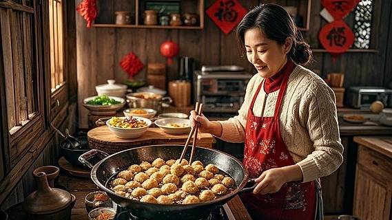 那天在厨房看见妈妈举着手机视频,对着屏幕那头的外婆问“炸丸子油温几成热才算正好”,突然愣住了。印象里无所不能的妈妈,此刻像个考试前临时抱佛脚的学生,连围裙带子都系得歪歪扭扭。热油滋滋响着,她紧张地用筷子戳了戳面团,油星溅到手腕上时,那声短促的“哎呀”和三十年前老照片里扎羊角辫的小姑娘重叠在一起。
